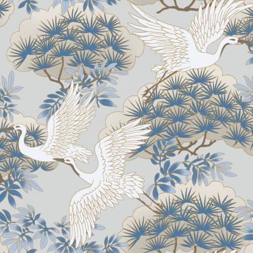 nazwa: Tapeta York Tea Garden AF6591 drzewa żurawie biały niebieski