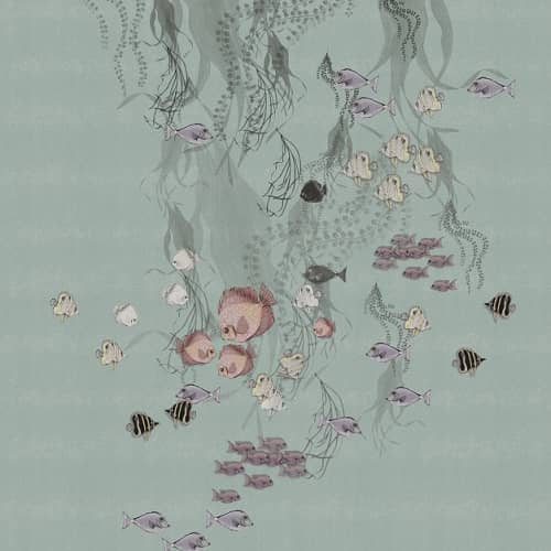 Mural z kolekcji Smart Art przedstawia szare i niebieskie ryby pływające w morzu. Jasne, lekko przydymione kolory świetnie oddają spokojny klimat tego motywu. Struktura płótna jest dodatkowym, mocnym atutem tej okładziny, która jest  idealna do salonu, jadalni lub restauracji. Każdy mural z kolekcji to inna historia, opowiedziana za pomocą kilku paneli tworzących jedną calość przypominającą obraz. Są tu motywy roslinne w żywych barwach, zwierzęta jakby przeniesione wprost z dżungli, jest duża geometria i ponadczasowe pasy.  Murale mają wyczuwalną strukturę, są odporne na uszkodzenia i pięknie pracują ze światłem. W tej kolekcji każdy znajdzie coś, co sprawi, że jego wnętrze będzie niepowtarzalne i niezwykłe.
