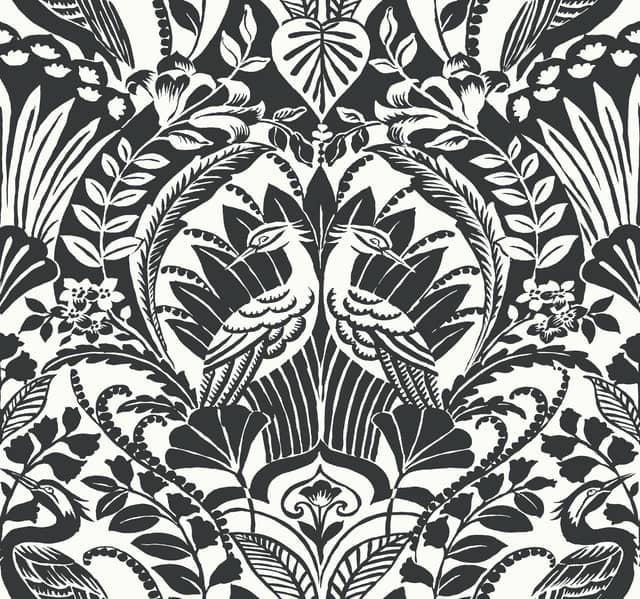 wzór: Tapeta Black & White Library Recource Damask Czapla Czarny BW3931