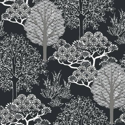 Pobierz teksturęWzór nawiązujący swoim stylem do dawnych, azjatyckich kimon z najnowszej kolekcji Black & White Recource Library światowej sławy, amerykańskiego producenta tapet York Wallcoverings. Regularne kształty drzew i krzewów w metalicznym wykończeniu przełamują gemoetryczną kompozycję o naturalnym, botanicznym charakterze. Ciekawy wzór idealnie sprawdzi się w salonie, kuchni lub sypialni, jako ściana dekoracyjna pasując do każdej przestrzeni.
