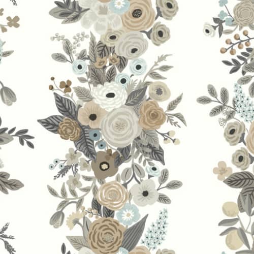Inspirujące kwiaty układające się w szerokie gęste pasy. Tapeta zaprojektowana przez znakomitą i cenioną  ilustratorkę Annę Bond załozycielkę marki RIFLE PAPER CO, która w kolaboracji z amerykańskim producentem York Wallcoverings stworzyła piękną kolekcję tapet. Nasycone głębokie barwy. Piękny wzór przedstawiający roślinność, wysublimowane stonowane kolory.