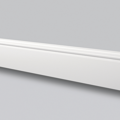 Listwa przypodłogowa wykonana z wysokiej gęstości polistyrenu. Powłoka gładka z farbą podkładową, przygotowana do malowania. Listwa jest lekka, twarda, odporna na wodę i wilgoć, odporna na zmywanie, niepalna oraz nietoksyczna. Listwa w nowoczesnym stylu.