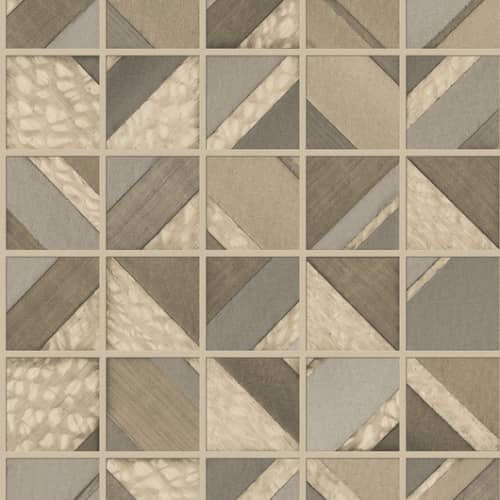 Pobierz teksturęTapeta MM1748 pochodzi z kolekcji MIXED MATERIALS - ostatniej nowości znanej amerykańskiej firmy YORK. Tapeta przedstawia geometryczny wzór wpisany w równe kwadraty imitujące płytki. Strukturalne tło, szaro - brązowa kolorystyka, srebrzysty połysk. Całość niebanalna i efektowna. Tapeta idealna dla lubiących proste, nowoczesne wnętrza i ceniących spokojną elegancję.