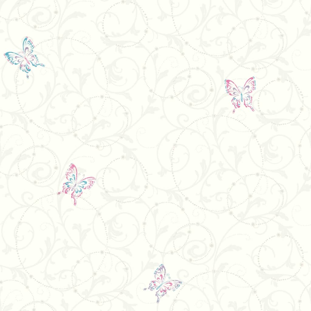 Pobierz teksturęWyjątkowa tapeta GK8940 GROWING UP KIDS amerykańskiej firmy YORK dedykowana jest nieco starszym dzieciom. Srebrne ornamenty i rozrzucone między nimi różowe i niebieskie motylki na białym tle idealnie sprawdzą się w pokoju małej elegantki. Delikatny styl glamour i dziewczęce wzory sprawiają, że całość jest subtelna i wysmakowana. Dzięki tej propozycji ściany dziecięcego pokoju udekorowane będą w sposób niepowtarzalny i orginalny.