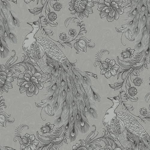 Tapeta KASHMIR CR32777 z motywem pawia siedzącego na ukwieconej gałęźi, jest zdobiona kryształkami Swarowskiego na ogonie, które nadają tapecie wyjątkowy ekskluzywny wygląd. Odporna na uszkodzenia, zmywalna. Ekskluzywna tapeta winylowa na podkładzie flizelinowym.