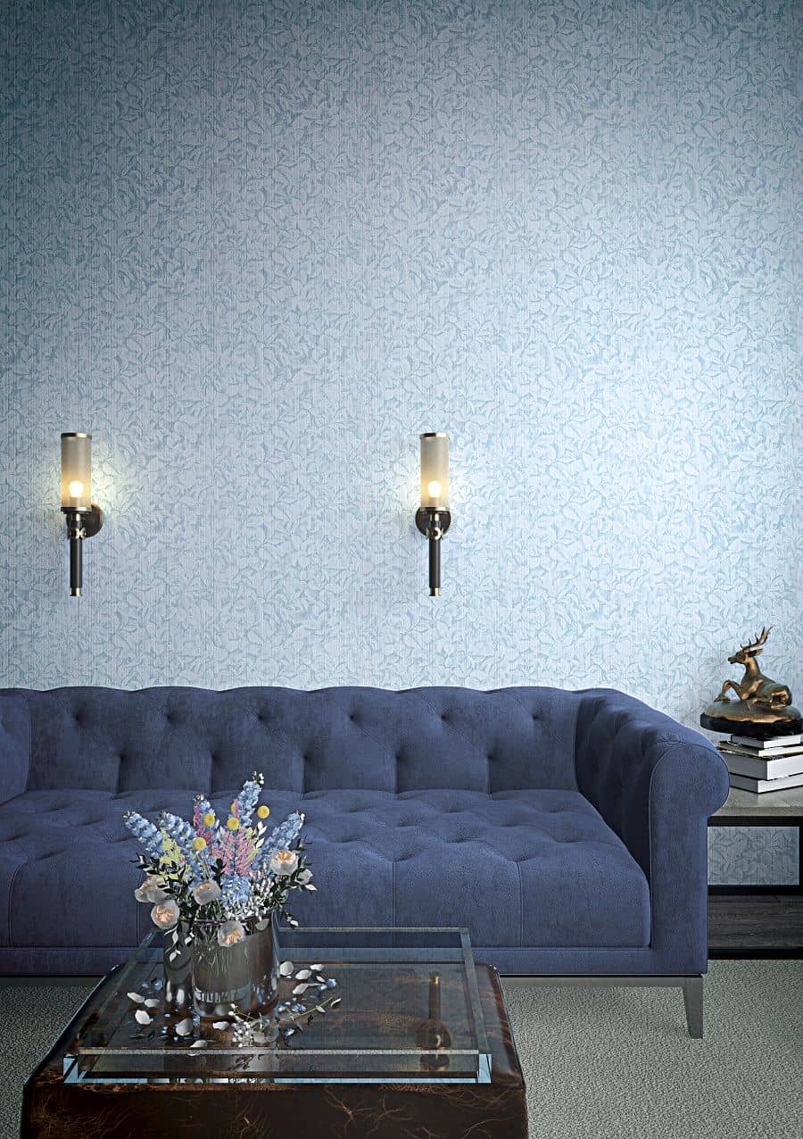 Pobierz teksturęSubtelny wzór roślinny w odcieniach jasnego błękitu pięknie prezentuje się na ścianie. Mural pochodzi z kolekcji Domotex autorstwa niemieckiej firmy Marburg. Stanowi ciekawy sposób na uzupełnienie aranżacji wnętrza, wypełniając je pięknymi kolorami.