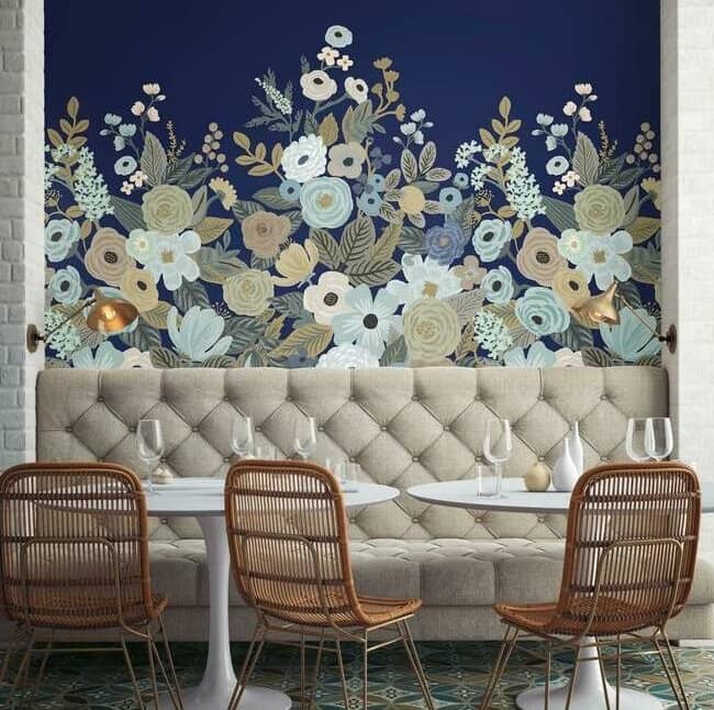 nazwa: Mural Garden Party Rifle Paper Co. Anna Bond malowane kwiaty granat RI5191