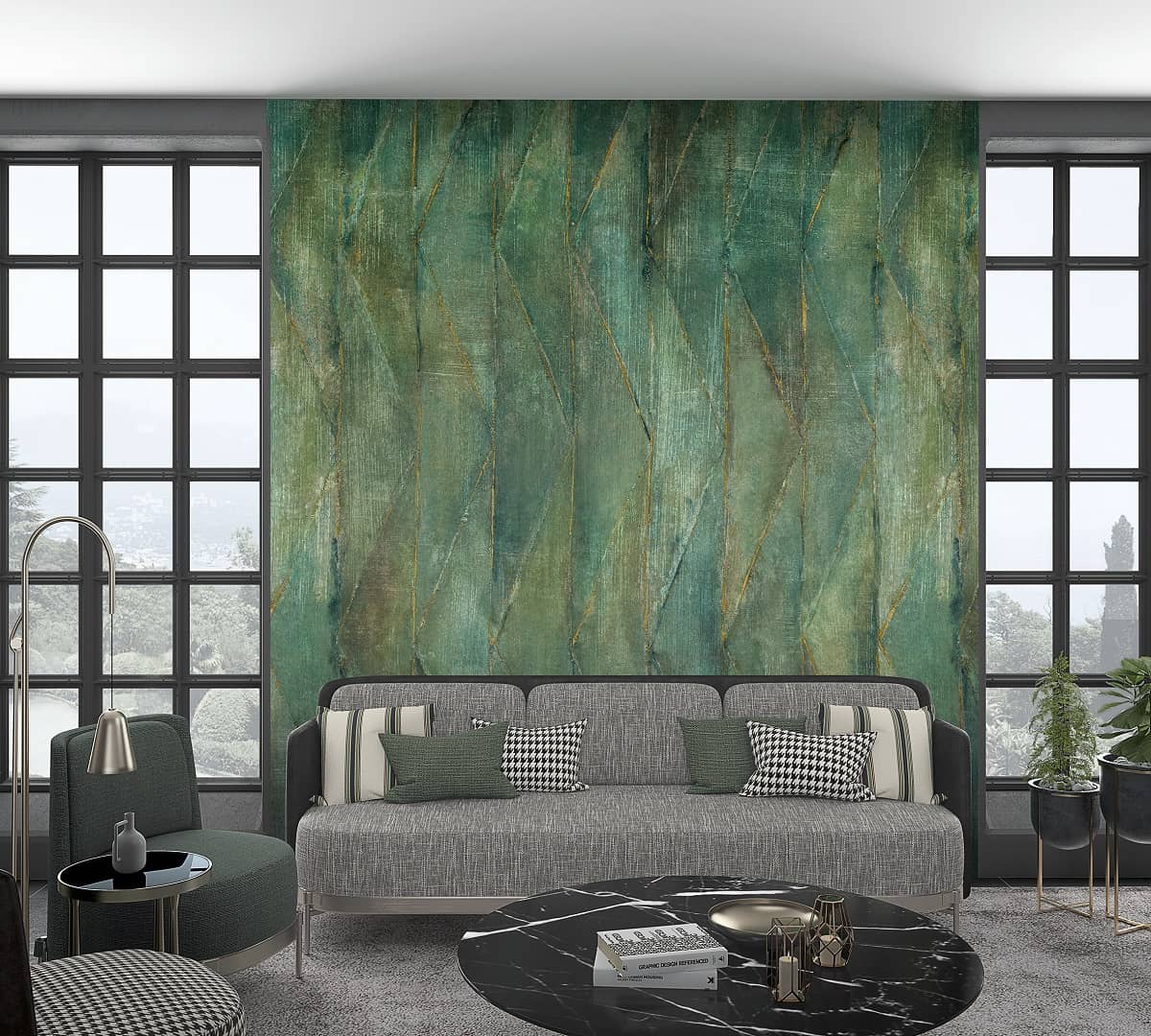 Wyjątkowy mural z kolekcji Smart Art przedstawia duży, geometryczny wzór, układając3 się pionowo. Soczysty, zielony kolor, gruba faktura i efekt postarzenia wyróżnia tę okładzinę na tle innych i doskonale sprawdzi się w najbardziej różnorodnych aranżacjach. Każdy mural z kolekcji to inna historia, opowiedziana za pomocą kilku paneli tworzących jedną calość przypominającą obraz. Są tu motywy roslinne w żywych barwach, zwierzęta jakby przeniesione wprost z dżungli, jest duża geometria i ponadczasowe pasy.  Murale mają wyczuwalną strukturę, są odporne na uszkodzenia i pięknie pracują ze światłem. W tej kolekcji każdy znajdzie coś, co sprawi, że jego wnętrze będzie niepowtarzalne i niezwykłe.