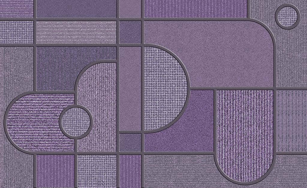 Geometryczny wzór w odcieniach fioletu, oberżyny inspirowany modernizmem. Taki mural będzie piękna ozdobą nowoczesnych wnętrz. Idealnie skomponuje się z najmodniejszymi dodatkami.Obszerne płaszczyzny w ciekawy sposób podzielą ściany dodając przestrzeni inspirującego charakteru.