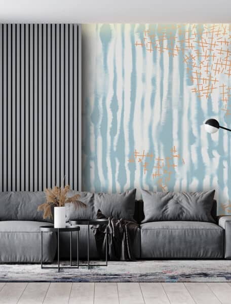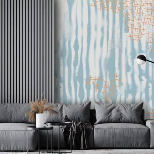 Nowoczesny i abstrakcyjny mural piękna propozycja dla odważnych klientów. Lawowany charakter wzoru, pionowe linie układające się w pasy dodadzą harmoni i spokoju we wnętrzu. Odcienie błękitu pozytywnie nastroją domowników.