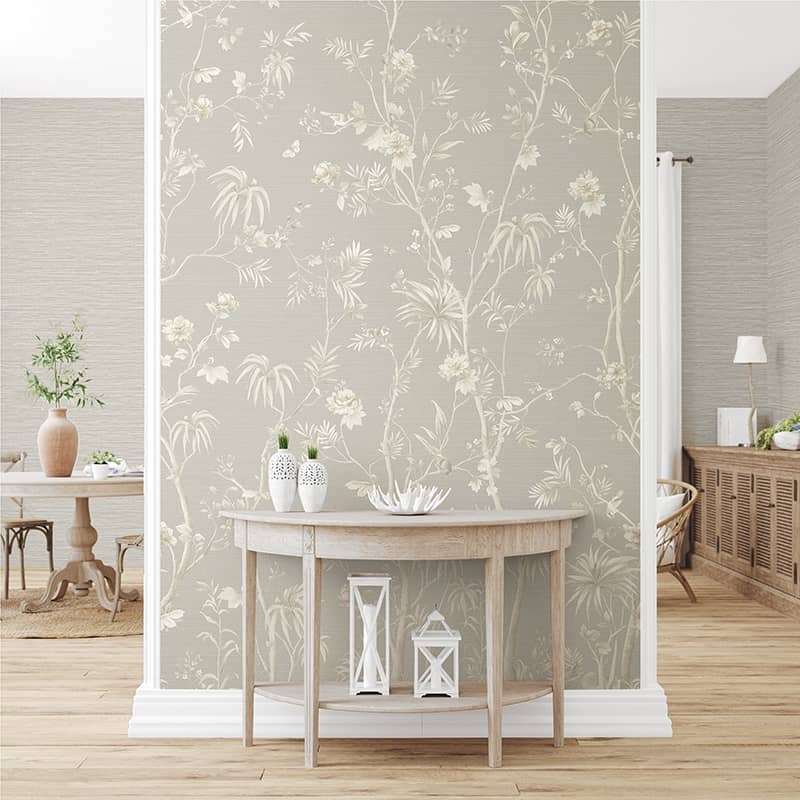 Efektowny mural o wzorze tropikalnym z kolekcji okładzin ściennych Grasslands autorstwa amerykańskiej firmy Wallquest inspirowany pięknem natury. W wyjątkowy sposób odmieni każde wnętrze, dodając mu świeżości. Doskonała propozycja zarówno do salonu, jak i sypialni. Piękny pejzaż przedstawiający roślinność i pastelowym odcieniu  doda wnętrzu lekkości.