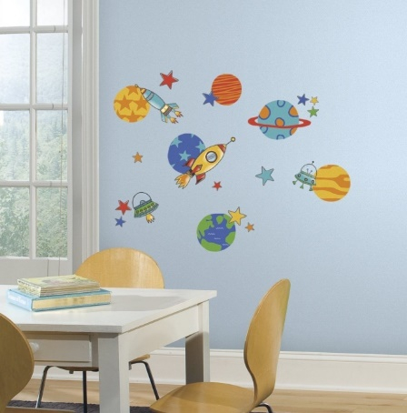 Pobierz teksturęNaklejka foliowa samoprzylepna wielokrotnego użytku przedstwiająca kolorowe rakiety kosmiczne. Dzięki zastosowaniu specjalnego kleju, odklejamy i przyklejamy ją wielokrotnie w innych miejscach, nie pozotawiając śladów na ścianie nawet po długim czasie. Nadaje się również do dekoracji mebli. Naklejka składa się z 4 arkuszy o wymiarze 25,4 cm x 45,7 cm, komplet składa się z 39 elementów.