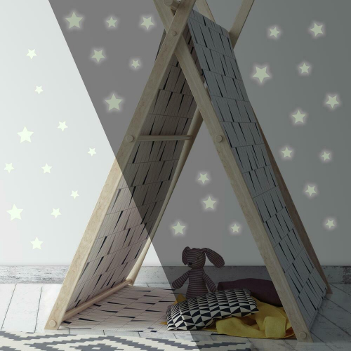 Naklejki ze święcącymi gwiazdkami przepięknie rozświetlą pokój dziecka w ciemną noc i sprawią, że wieczory staną się przyjemnością w przytulnym pokoju z otulającą atmosferą. Idealna do sypialni, jak i innych pomieszczeń. Naklejki wielokrotnego użytku z bardzo łatwym montażem i demontażem, dzieki specjalnemu klejowi na powierzchni nie pozostają żadne ślady. Produkt wykonany z wysokiej jakości winylu, dobrze sprawdzi sie na powierzchniach płaskich przy dekorowaniu ścian, mebli czy sprzętów elektronicznych. Naklejki słynnej marki RoomMates od amerykańskiej firmy York sa wyprodukowane przy zachowaniu wszystkich norm i rygorystycznych wytycznych. Naklejki mieszczą się na 2 arkuszach o wymiarze 22,9 cm x 44,1 cm, na których jest aż 60 elementów.