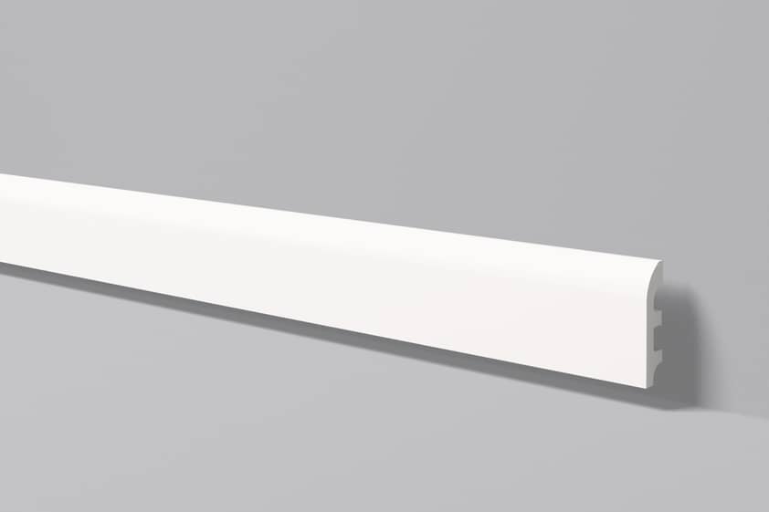Pobierz teksturęListwa przypodłogowa wykonana z wysokiej gęstości polistyrenu. Powłoka gładka z farbą podkładową, przygotowana do malowania. Listwa jest lekka, twarda, odporna na wodę i wilgoć, odporna na zmywanie, niepalna oraz nietoksyczna. Listwa w nowoczesnym stylu.