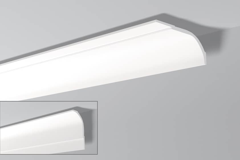 Pobierz teksturęListwa przysufitowa wykonana z wysokiej gęstości polistyrenu. Powłoka gładka z farbą podkładową, przygotowana do malowania. Listwa jest lekka, twarda, odporna na wodę i wilgoć, odporna na zmywanie, niepalna oraz nietoksyczna. Listwa w klasycznym stylu.