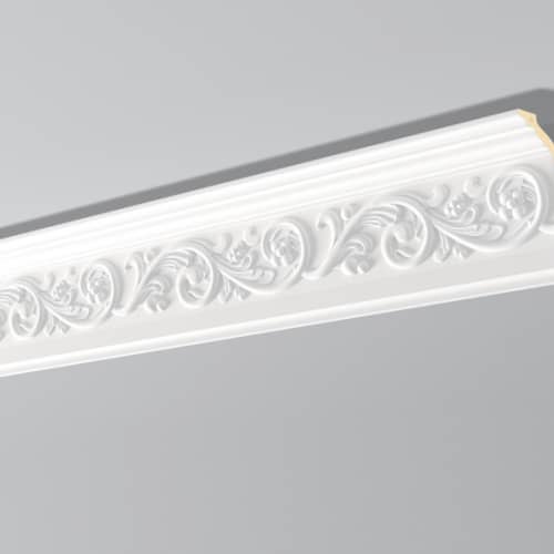 Pobierz teksturęListwa ARSTYL jest wykonana z twardego poliuretanu o wysokiej gęstości. Powłoka jest gładka pomalowana białą farbą podkładową, przygotowana do malowania. Listwa jest lekka, wytrzymała, odporna na wodę i wilgoć. Można malować wszystkimi farbami lateksowymi, emulsyjnymi, akrylowymi, metalicznymi na bazie wody. Listwa w klasycznym stylu, bogato zdobiona.