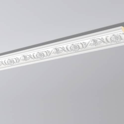 Pobierz teksturęListwa ARSTYL jest wykonana z twardego poliuretanu o wysokiej gęstości. Powłoka jest gładka pomalowana białą farbą podkładową, przygotowana do malowania. Listwa jest lekka, wytrzymała, odporna na wodę i wilgoć. Można malować wszystkimi farbami lateksowymi, emulsyjnymi, akrylowymi, metalicznymi na bazie wody. Listwa w klasycznym stylu, bogato zdobiona.