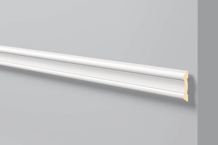 Pobierz teksturęListwa przyścienna wykonana z wysokiej gęstości Poliuretanu. Powłoka gładka przygotowana do malowania. Jest lekka, twarda, odporna na wodę i wilgoć, odporna na zmywanie, niepalna oraz nietoksyczna. Można malować wszystkimi farbami lateksowymi, emulsyjnymi, akrylowymi, metalicznymi na bazie wody. Listwa w klasycznym stylu.