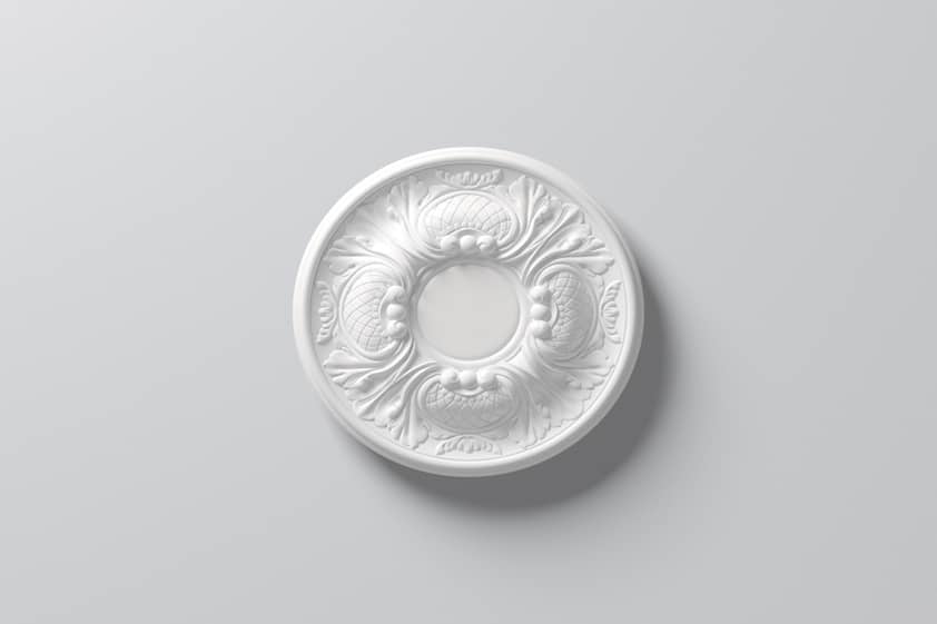 Pobierz teksturęRozeta ARSTYL jest wykonana z twardego poliuretanu o wysokiej gęstości. Powłoka jest gładka pomalowana białą farbą podkładową, przygotowana do malowania. Rozeta jest lekka, wytrzymała, odporna na wodę i wilgoć. Można malować wszystkimi farbami emulsyjnymi, akrylowymi, metalicznymi na bazie wody.