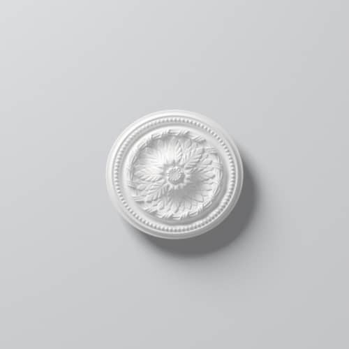 Pobierz teksturęRozeta ARSTYL jest wykonana z twardego poliuretanu o wysokiej gęstości. Powłoka jest gładka pomalowana białą farbą podkładową, przygotowana do malowania. Rozeta jest lekka, wytrzymała, odporna na wodę i wilgoć. Można malować wszystkimi farbami emulsyjnymi, akrylowymi, metalicznymi na bazie wody.
