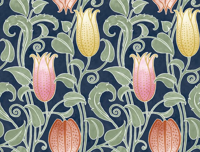 nazwa: Tapeta botanika kwiaty Ronald Redding Arts & Crafts AC9203 granat czerwień