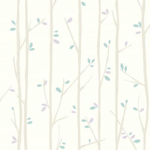 Tapeta do pokoju dziecięcego w delikatny wzór drzew.