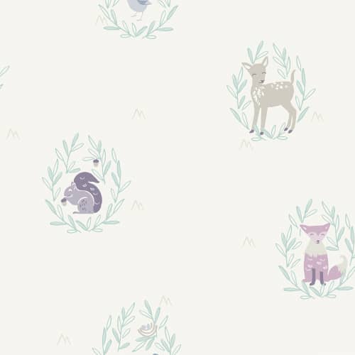 Tapeta do pokoju dziecięcego w delikatny wzór  ze zwierzątkami.