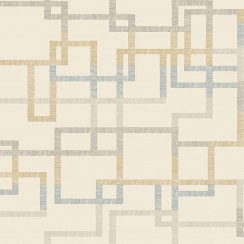 Interesująca tapeta z wzorem przeplatających się, beżowo-niebieskich lini.pochodzi z kolekcji Gingko angielskiej marki Elizabeth Ockford. Nieregularny motyw przypomina trochę instalację z rur i jest bardzo orginalny w swej prostocie. Tapeta idealna do industrialnych wnętrz.  Cała kolekcja to zbiór różnorodnych, współczesnych wzorów z metalicznym połyskiem i deikatną strukturą.  Widoczna inspiracja naturą sprawia, że okładziny są bardzo przyjazne i doskonale sprawdzą się w najbardziej różnorodnych wnętrzach, od nowoczesnych do spokojnych i klasycznych. Każdy znajdzie tu coś dla siebie.