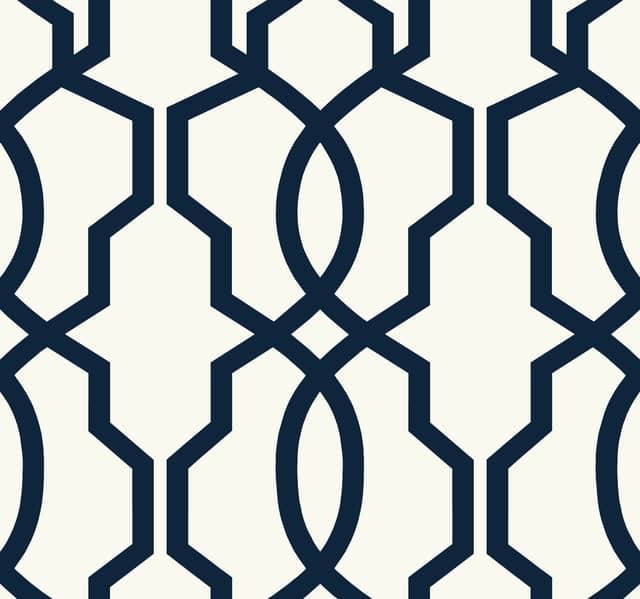 Duży geometryczny wzór w ciekawy sposób wypełni ścianę, przeplatające się linie o zaaokrąglonych elementach wprowadzą ciekawe podziały na ścianie. Taka płaszczyzna będzie mocnym punktem w każdym wnętrzu. Zestawienie kolorystyczne granatu i bieli idealnie podkreśli aranżacje w stylu hampton czy marinistycznym. Granatowe linie na jasnym tle doda niezapomnianego charakteru, elegancji i luksusu.