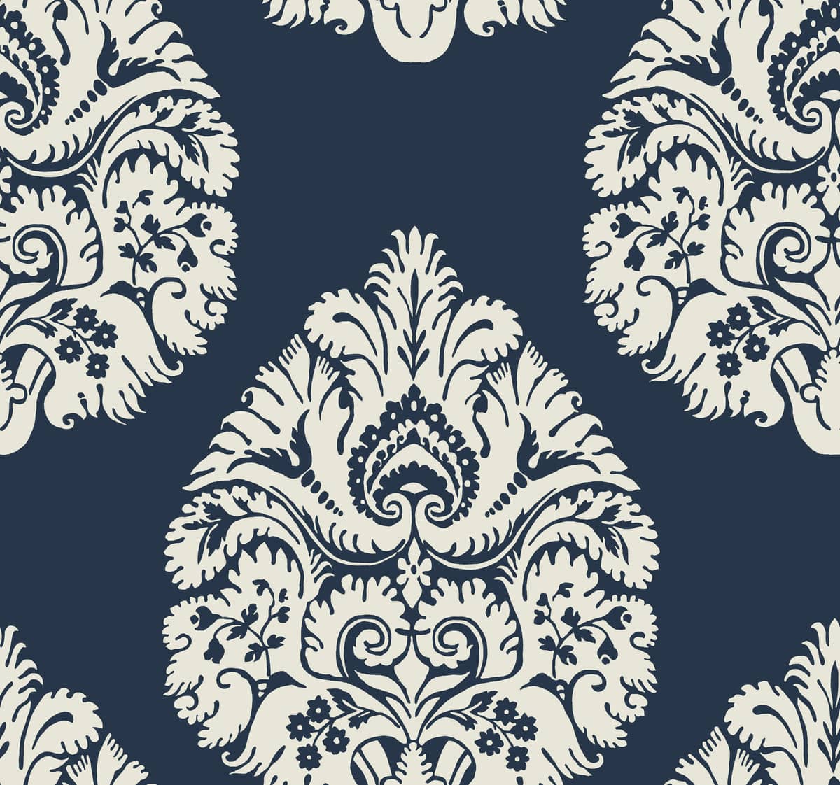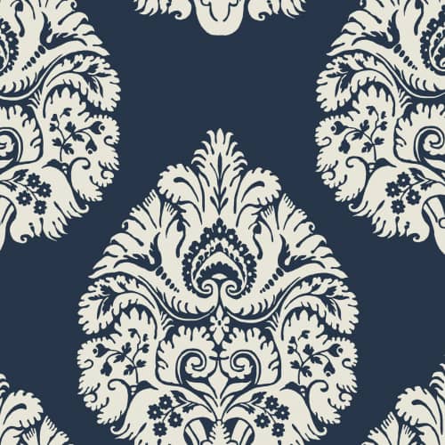Klasyczny wzór synonim elegancji i luksusu. Ponadczasowy motyw damasku ciekawie zaprezentuje się we wnętrzach urządzonych w stylu klasycznym czy glamour. Obszerny rozłorzysty ornament w interesujący sposób zakomponuje się na ścianie. Ciemne granatowe tło na którym widnieje kontrastowy wzór bedzie inspirującą ozdobą wnętrza. Cędzie wklejenie tej tapety w ramy ze sztukaterii.