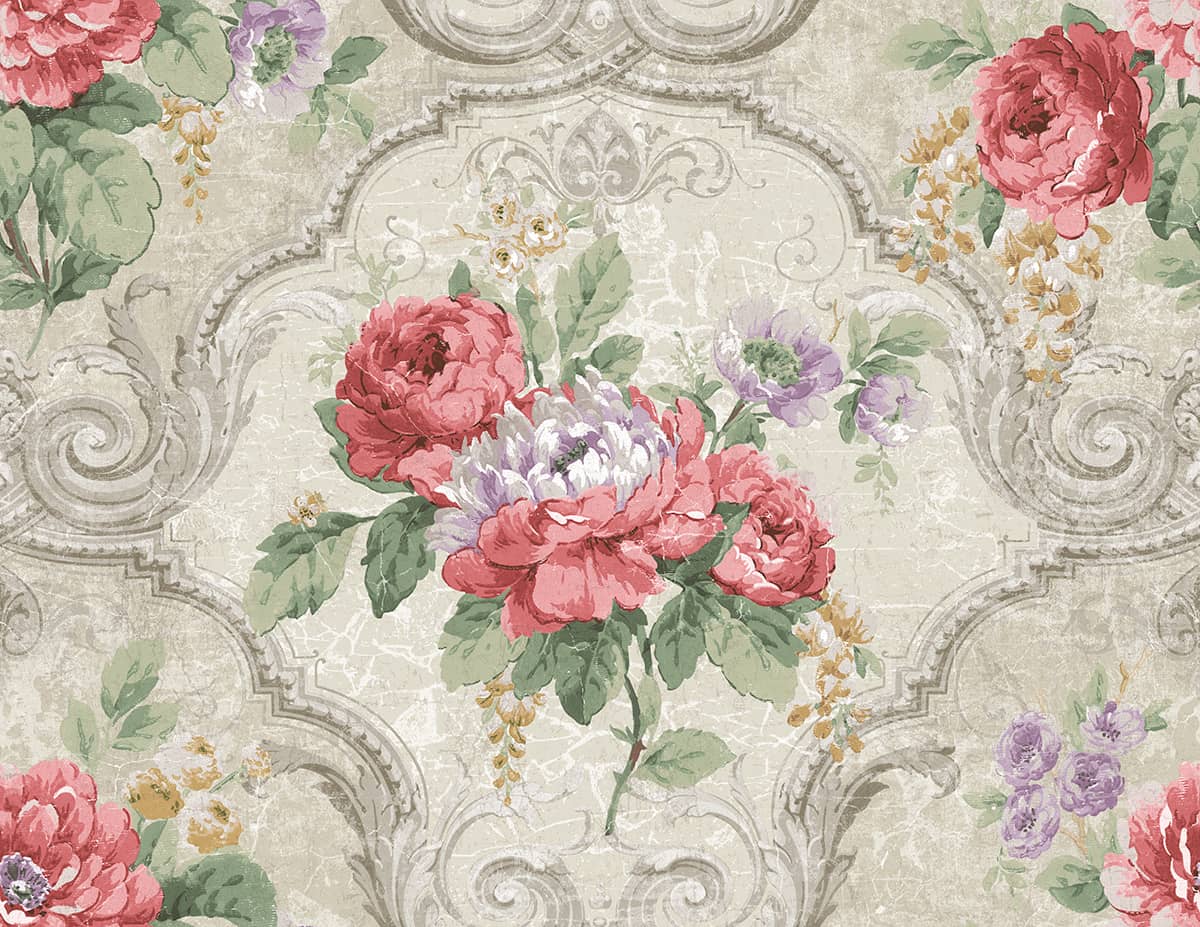 wzór: Tapeta kwiaty Nina Hancock Brockhall NH20004 czerwony fioletowy