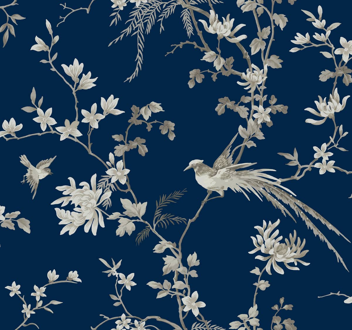 wzór: Tapeta kwiaty ptaki granat York Wallcoverings Ronald Redding 24 Karat KT2171
