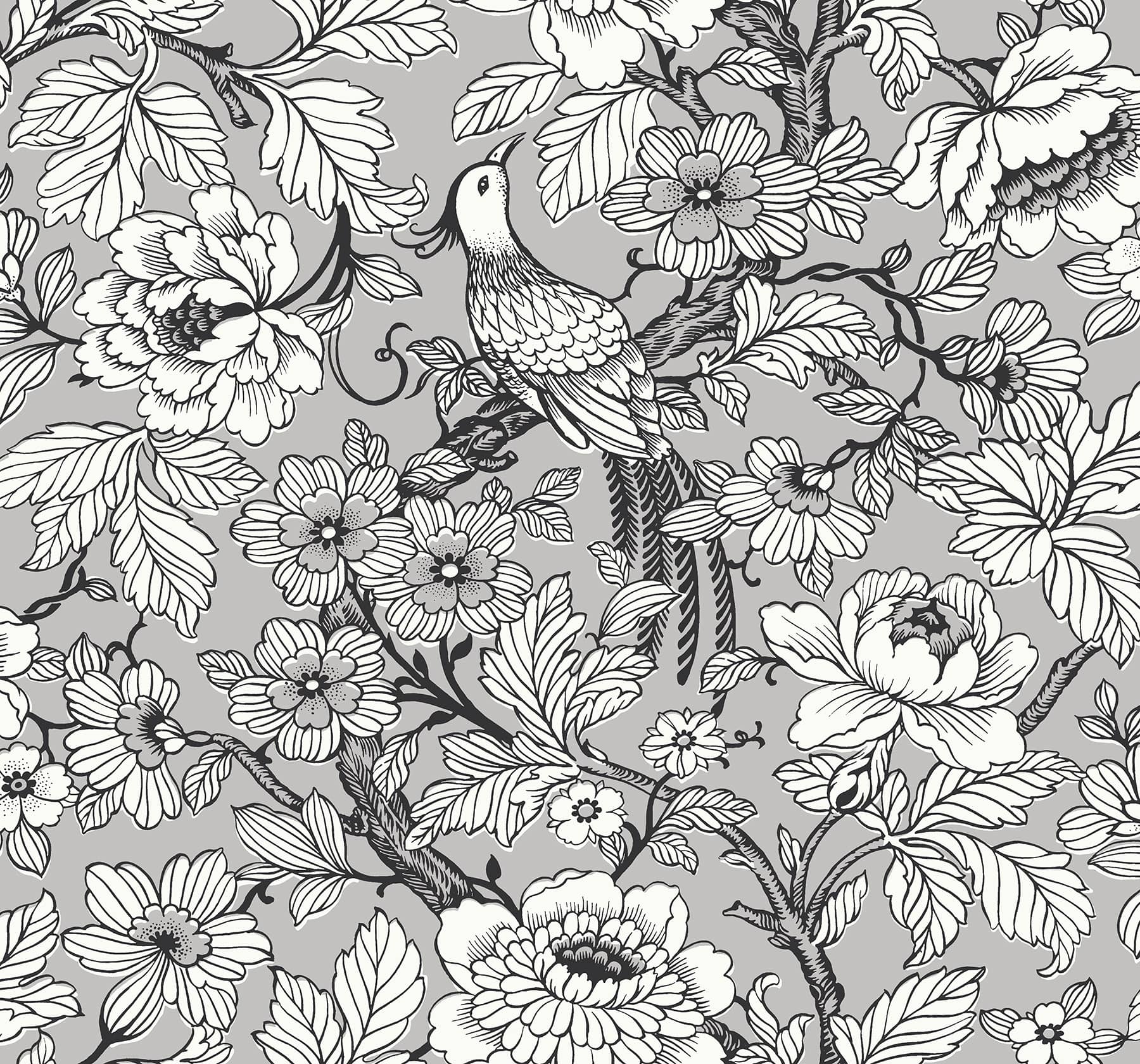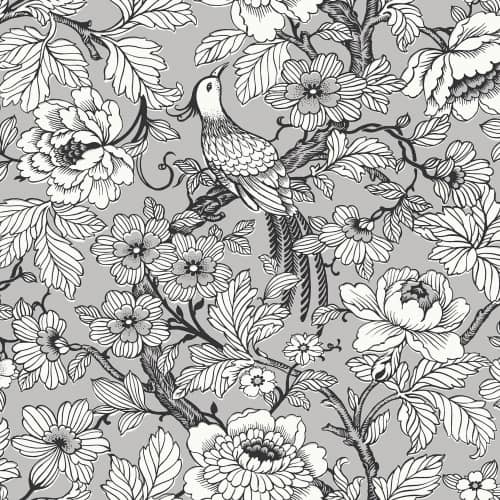 wzór: Tapeta kwiaty ptaki szarość WALLQUEST NEWPORT EC80407