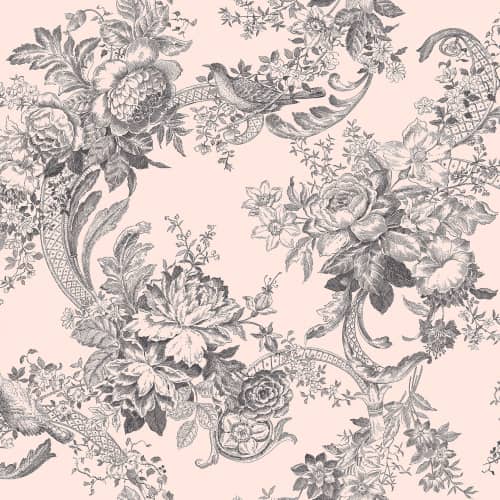 Stylowa i elegancka tapeta przedstawiająca kwiecisty motyw przywołuje skojarzenia ze starodawnymi grafikami. Skrupulatny rysunek, drobne gałazki kwiatów oplatające ornamenty a na nich przysiadające ptaki. Piękny i ponadczasowy obraz. Tapeta będzie dopełnieniem zarówno wnętrz urządzonych w stylu klasycznym czy vintage.