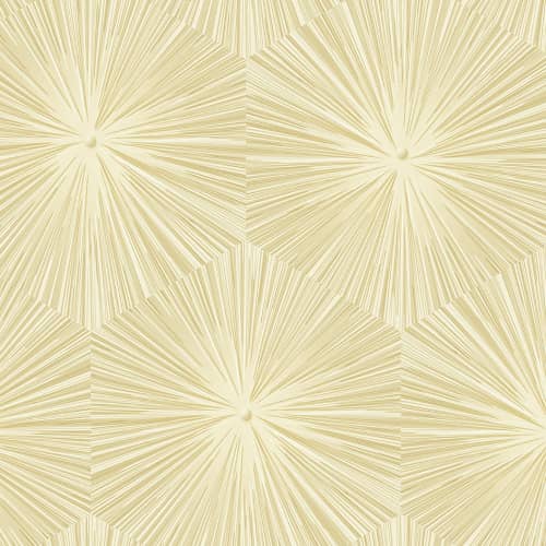 Wyjątkowa tapeta AV51105 z kolekcji Avant Garde amerykańskiej firmy Seabrook to wyjątkowa okładzina przedstawiające  białe promienie wpisane w duże heksagony na połyskującym złotem tle.  Wzór jest prosty i elegancki.  Klasyka połączona z awangardą, zdecydowane kolory idące w parze z delikatnymi barwami.  Połączenie nowoczesności i tradycji, które idealnie sprawdzi się w bardzo różnorodnych wnętrzach i zadowoli najbardziej wymagające gusta.