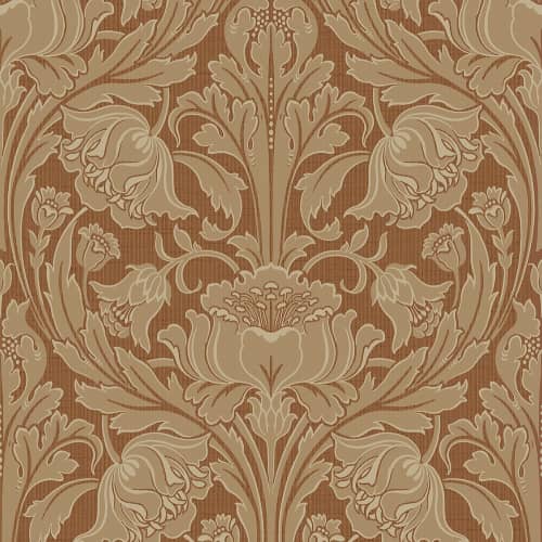 Pobierz teksturęEkskluzywna tapeta tekstylna z ornamentowym zdobieniem w stylu Damask autorstwa wybitnego brytyjskiego projektanta Carla Robinsona przedstawia na nowo zdefiniowany klasyczny wzór, zachwycający swoim wyglądem. Sprawi, że wnętrze nabierze wyrazistości i elegancji. Rdzawa kolorystyka pięknie wygląda zarówno w świetle dziennym, jak i sztucznym. Tapeta pochodzi z kolekcji Raffles No. 16, została wykonana metodą sitodruku. Będzie świetnym akcentem dekoracyjnym salonu, sypialni czy pokoju gościnnego. Sprawdzi się jak w klasycznym, tak i współczesnym wnętrzu, nadając mu stylowy charakter.