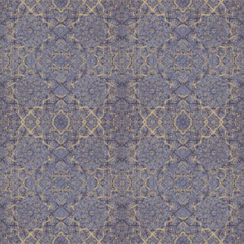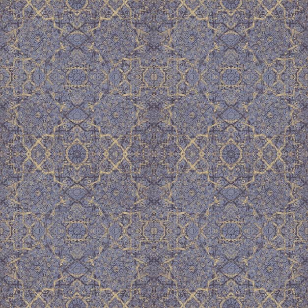 Granatowa połyskująca tapeta. Orientalna i zjawiskowy motyw w ciekawym niejednorodnym odcieniu. Gęsty i gobelinowy wzór z połyskującymi złotymi ornamentami układającymi się na ścianie niczym labirynt. z perskich dywanów stworzy na ścianie ciekawą i inspirującą kompozycję. Kolory w ciepłych odcieniach  przeniosą do wnętrza ciekawą aurę tajemniczości i ciepła.
