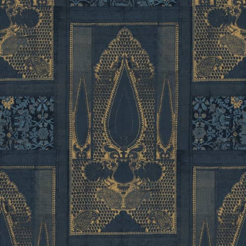 Prawdziwy hit. Jedyna i niepowtarzalna propozycja, która olśni każdego miłośnika orientu. iękne i ponadczasowe połączenie kolorów. Głęboki odcień granatu ze złotym zdobnym motywem w orientalnym charakterze. Klasa i elegancja w najwyższym calu. Duży wzór w interesujący sposób wypełni ścianę dodając wnętrzu elegancji i klasy. Tapeta ma połyskujące wykończenie, jej fragmenty posiają metalizowane odbijające światło elementy. Tego typu zabieg da niesamowite, plastyczne wrażenie na ścianie. Powierzchnia będzie się pięknie prezentowała zarówno przy oświetleniu dziennym jak i wieczorem podświetlona punktowym strumieniem światła.