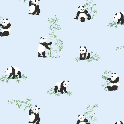Przedstawia motyw w wesołe misie pandy na niebieskim tle.