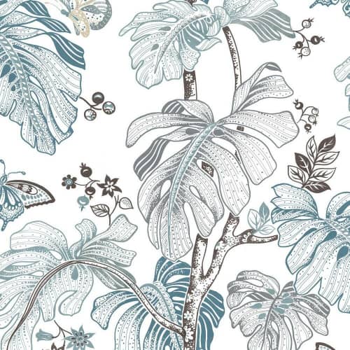 Przedstawia motyw niebieskich tropikalnych liści na białym tle, które będą ożywiać każde wnętrze.