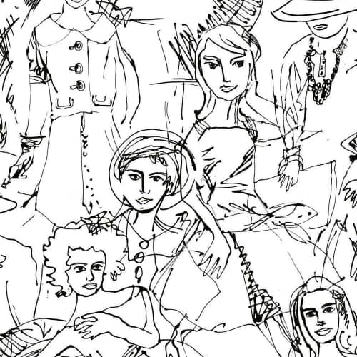 Wzór artystycznych rysunków wprost ze szkiców Vogue w czerni i bieli.