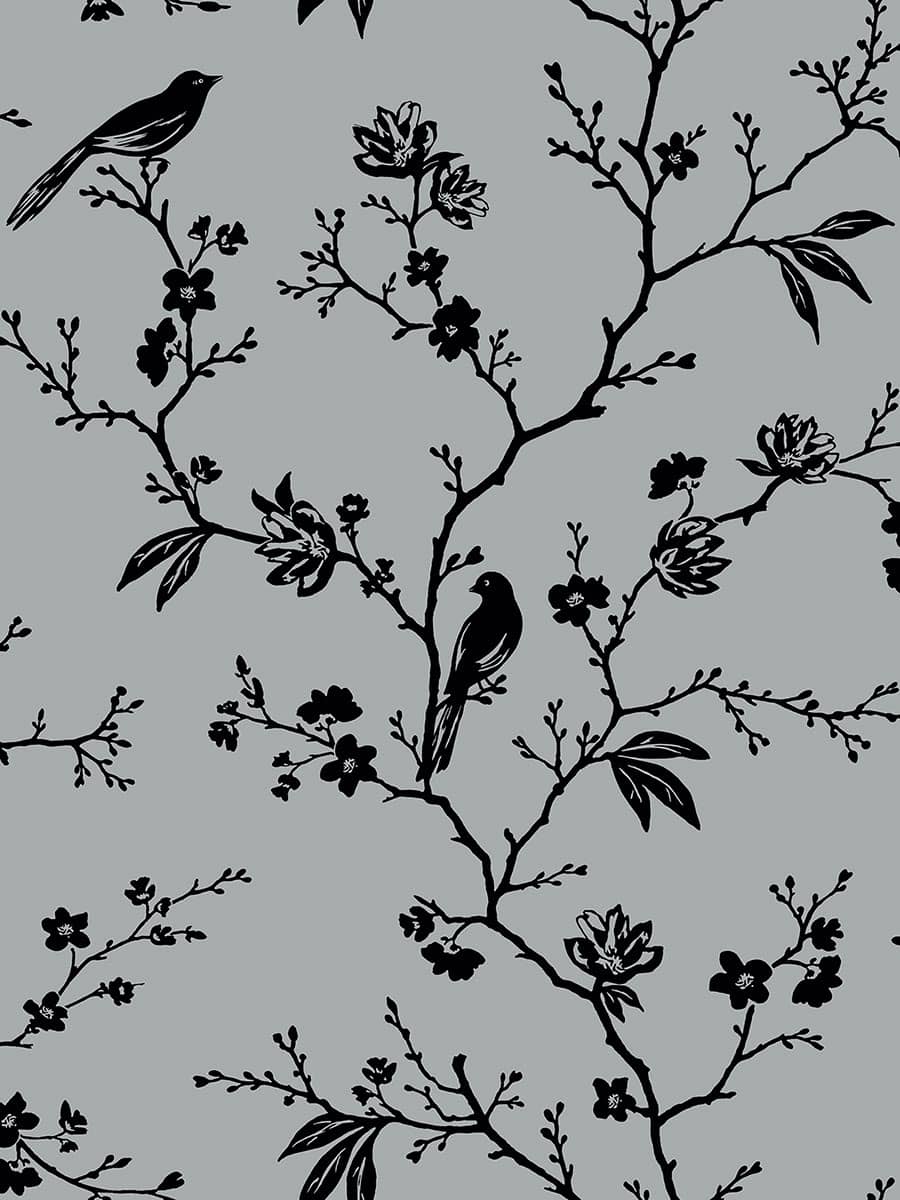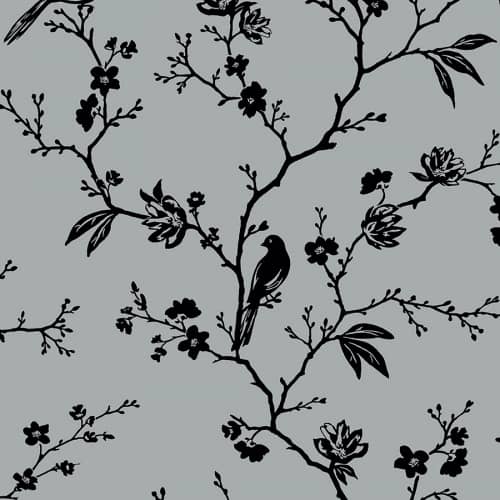 nazwa: Tapeta srebrny i czerń ptaki na gałęziach z liśćmi WALLQUEST PURE ELEMENTS SY20410