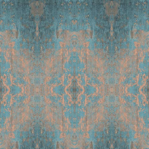 Pobierz teksturęWyjątkowe połączenie kolorów. Przenikające się odcienie morskich błękitów i turkusów uzupełnione miedzianymi akcentami. Tapeta przedstawia nowoczesny przecierany motyw. Duży wzór w interesujący sposób wypełni ścianę dodając wnętrzu elegancji i klasy. Tapeta ma połyskujące wykończenie, jej fragmenty posiają miedziane odbijające światło elementy. Tego typu zabieg da niesamowite, plastyczne wrażenie na ścianie. Powierzchnia będzie się pięknie prezentowała zarówno przy oświetleniu dziennym jak i wieczorem podświetlona punktowym strumieniem światła.