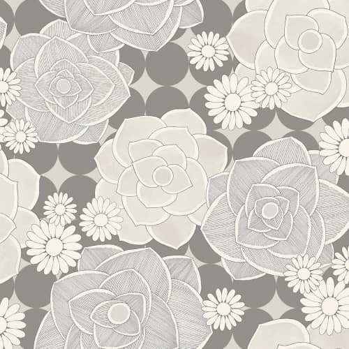 Piękna tapeta z amerykańskiej kolekcji Skyline przedstawia duże białe i srebrne kwiaty. Motyw jest bardzo wyrazisty i zarazem spokojny, z lekkim połyskiem. Nowoczesność doskonale połączona z naturą. Okładzina świetna do prostego salonu i sypialni. Cała kolekcja nawiązuje do wielkomiejskiego stylu i jest inspirowana klimatem  Nowego Jorku. Dominuje tu nowoczesna prostota widoczna w motywach geometrycznych, imitacji betonu czy eklektycznych wzorach kwiatowych. Z kolorów przeważa szarość z bielą i czernią, niebieski czy brąz, miejscami z odrobiną połysku. Okładziny idealne dla miłośników stonowanej, nowoczesnej elegancji i miejskich aranżacji.