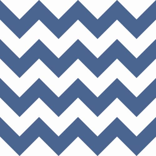 Wzór geometrycznej tapety z dziecięcej kolekcji A Perfect World amerykańskiej firmy York Wallcoverings przedstawia duże, granatowo-białe zygzaki. Idealnie sprawdzi się jako dopełnienie aranżacji pokoju dziecięcego w morskim stylu.