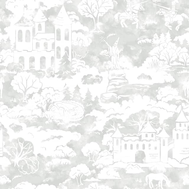 Śliczna tapeta z kolekcji A Perfect World autorstwa amerykańskiej firmy York Wallcoverings przedstawia mityczne stworzenia, czarodziejów i zamki w dziecięcej odsłonieIdealnie pasuje do aranżacji pokoju niemowlaka, dziecka stawiającego pierwsze kroki, jak również i dla przedszkolaka.