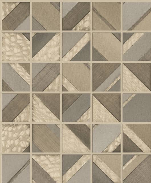 Pobierz teksturęTapeta MM1748 pochodzi z kolekcji MIXED MATERIALS - ostatniej nowości znanej amerykańskiej firmy YORK. Tapeta przedstawia geometryczny wzór wpisany w równe kwadraty imitujące płytki. Strukturalne tło, szaro - brązowa kolorystyka, srebrzysty połysk. Całość niebanalna i efektowna. Tapeta idealna dla lubiących proste, nowoczesne wnętrza i ceniących spokojną elegancję.