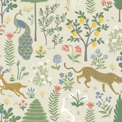 Pobierz teksturęTapeta zaprojektowana przez znakomitą i cenioną ilustratorkę Annę Bond załozycielkę marki RIFLE PAPER CO, która w kolaboracji z amerykańskim producentem York Wallcoverings stworzyła piękną kolekcję tapet. Urocza i zjawiskowa tapeta w pięknych nasyconych głębokich barwach. Piekny wzór przedstawiający roślinność, wśród której znajduje się zwierzyna. Ptaki dzikie koty, sarny.