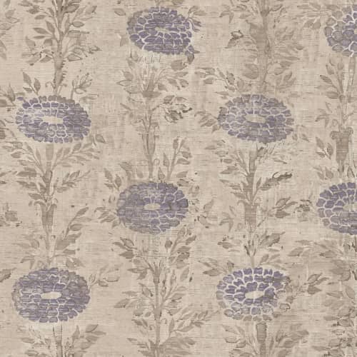 Urocza tapeta z kolekcji Tea Garden amerykańskiej marki Ronald Reading  przedstawia złoto - fioletowe kwiaty, przypominające francuskie nagietki. Jasny wzór, odrobina srebra i gładka faktura sprawiają, że okładzina wygląda niebanalnie i zarazem bardzo przyjaźnie. Na pewno ożywi salon lub sypialnię.  Kolekcja Tea Garden to delikatne kolory i wzory nawiązujące do natury. Znajdziemy tu motywy zwierżęce, japońskie ogrody z charakterystycznymi altanami ale też proste, geometryczne wzory z lekką fakturą wykonane z naturalnych tworzyw. Wszystko pięknie do siebie pasuje dzięki subtelnej kresce i łagodnych barwach. Kolekcja Tea Garden to gratka dla fanów delikatności,  marzycieli pragnących spokoju z odrobiną oryginalności. Okładziny z tego katalogu wprowadzą do wnętrz dobrą energię, nadając im wyraźnego choć nienachlanego charakteru.