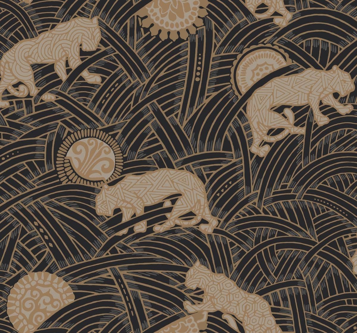 nazwa: Tapeta York Tea Garden AF6550 tygrysy złoty granatowy